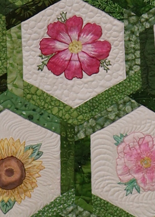 We are a co-op of quilters and textile artists. We enjoy experimenting with hand coloring and dying fabric, embroidery, applique and more. Here are a few highlights from our most recent patterns that will be available in January.